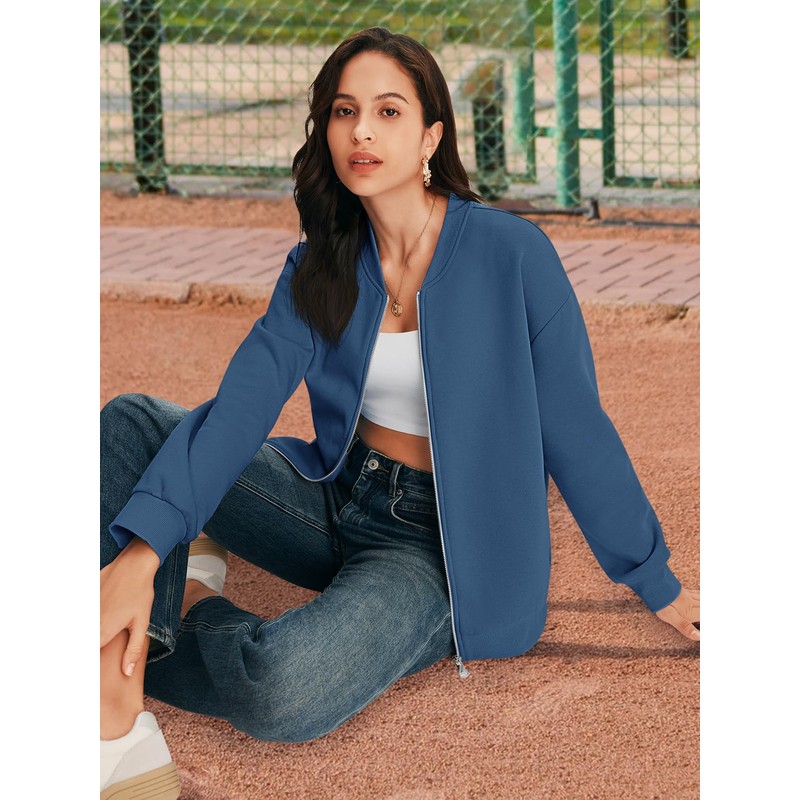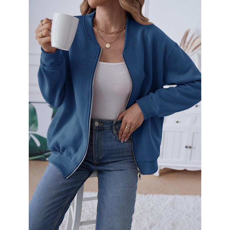 - Design: Fall hoodless jackets for women, full zip up, long sleeve, drop shoulder, crew neck, side two pockets, ribbed knit hem and cuffs, solid color, simple and casual design suit for women and teen girls, versatile and stylish.