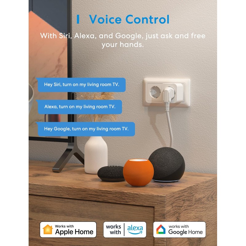 - Sprachsteuerung: Die WiFi Steckdose funktioniert mit Apple Home, Alexa und Google Home, verwenden Sie Sprachbefehle, um Ger?te ein- oder auszuschalten, die mit dem Smart Plug verbunden sind.