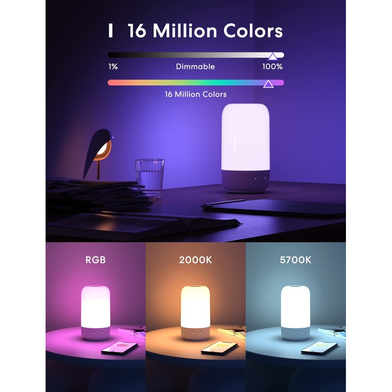 Meross Smart LED Bedside Lamp Touch Dimmable Works with Apple HomeKit, Colour Changing WiFi LED Night Lamp Works with Alexa and Google Home, RGBWW Night Light with Timing for Living Room