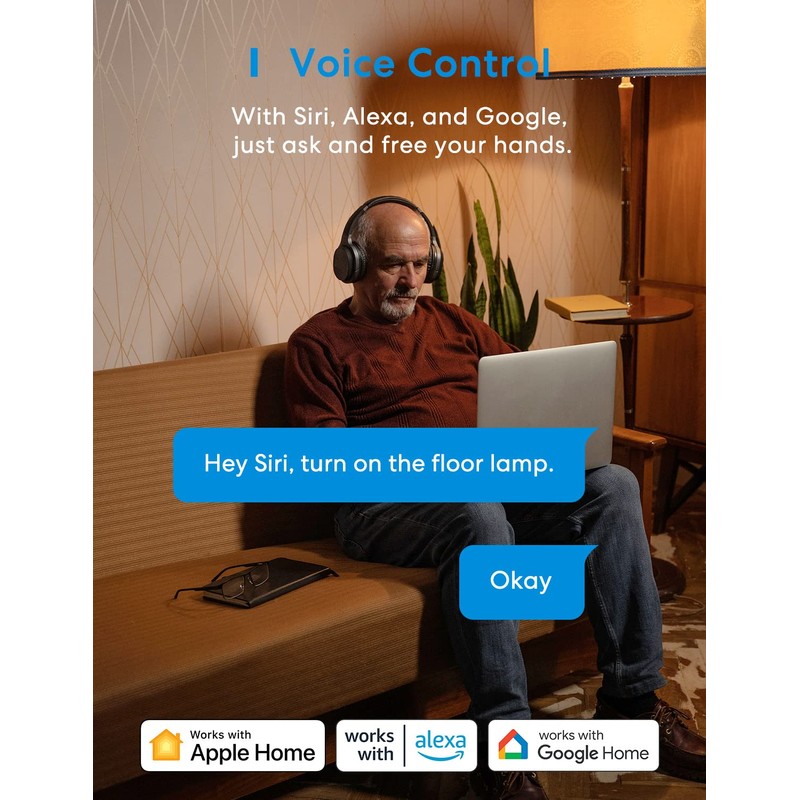 - Voice Control: Compatible With Apple HomeKit(iOS 13 or above), Siri, Alexa, Google Home and SmartThings, Control your devices hands free, just make a voice command to turn on/off the connected devices. Works with any 2.4GHz or Dual Band WiFi router. No hub required.