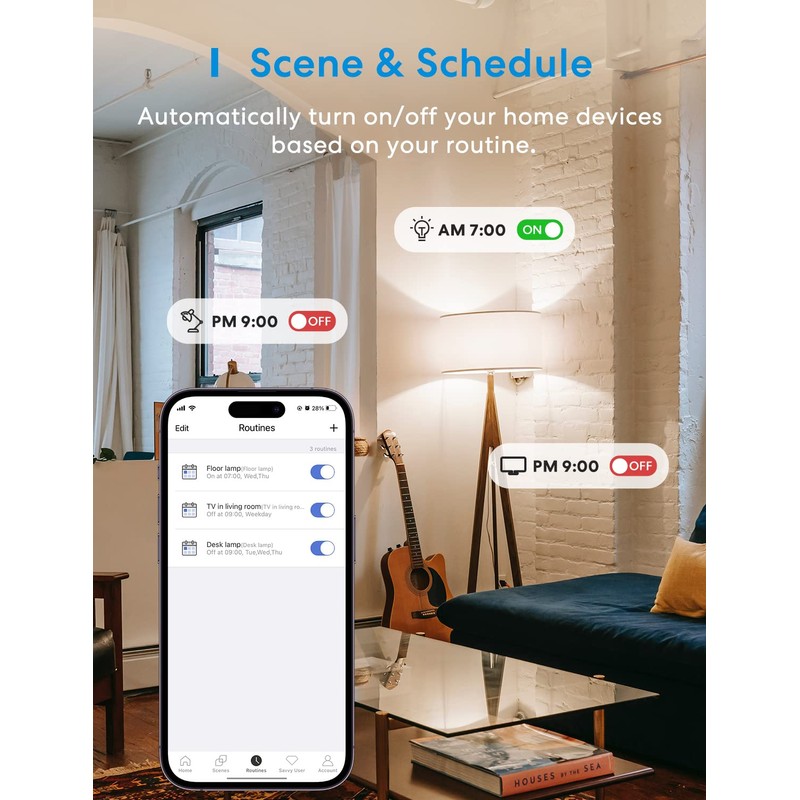 - Schedule and Timer Setting: WiFi Surge Protector supports to turn on and off the home or office devices automatically. Added benefit of saving energy when devices are not needed or are left on by accident. Support sunrise and sunset setting.