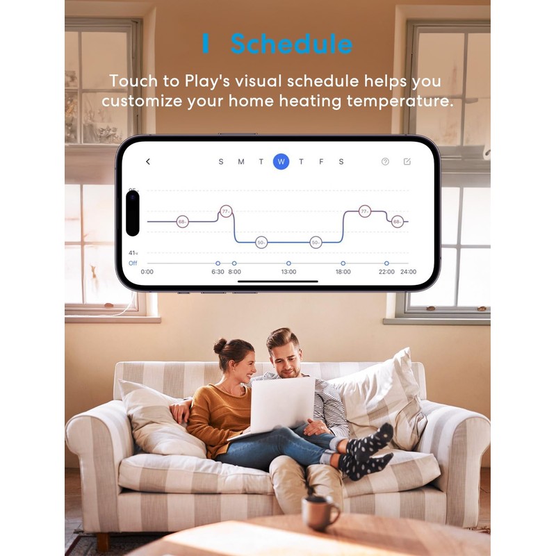 - High Accuracy: This programmable Wi-Fi thermostat ensures precise temperature control with ยฑ1โ accuracy. Adjust the temperature from 41โ to 95โ to your comfort. The sleek, pure white LCD display integrates seamlessly into your wall for a clean aesthetic