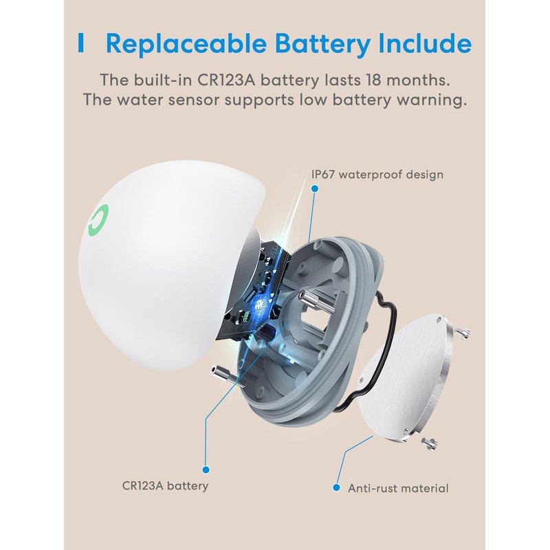 • Home Automation: Set triggers in the Meross app to automate other Meross devices and prevent water damage. e.g. once a leak is detected, the water alarm will trigger Meross plug to turn off fish tank water pump