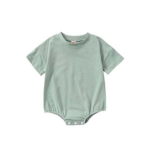 Merqwadd Baby Boy Girl Bubble Romper Infant Oversize Plain Crewneck T-Shirt Onesie Tops (3-6 Months,Sage Green)