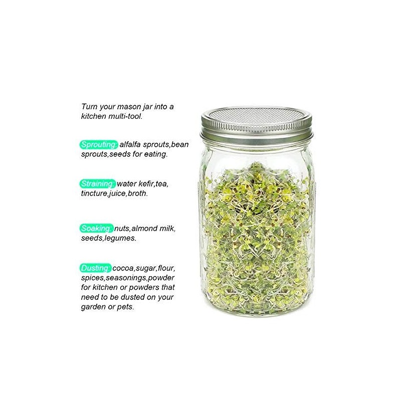 - MULTIPURPOSE In addition to sprouting jars, these lids can be used for spices, sugar, flour or glitter rain to make strainers and potpourri jars. Stimulate your creativity! Ideal for cooking, crafts and gifts. Perfect for home, kitchen or garden.