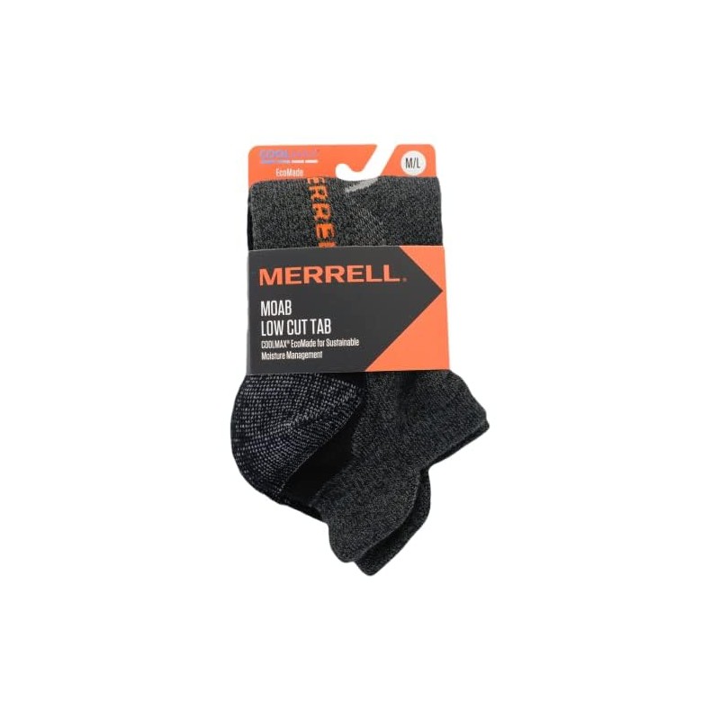 Merrell Men's and Women's MOAB Hiking Midweight Cushion Low Cut Tab Socks Coolmax Moisture Management and Arch Support, Charcoal, Medium-Large, Women's Shoe Size: 10-13, Men's Shoe Size 9.5-12