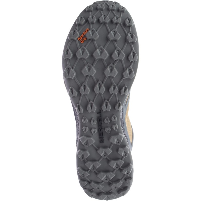 - Air Cushion in the heel absorbs shock and adds stability, EVA foam midsole for stability and comfort. Merrell mountain-grade Quantum grip rubber outsole, Vegan-friendly, 5mm lug depth