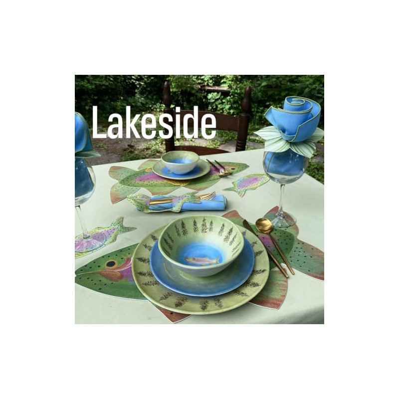Merritt Lakeside Trees and Trout by Carole Shiber 11" Melamine Dinner Plate, Set of 6