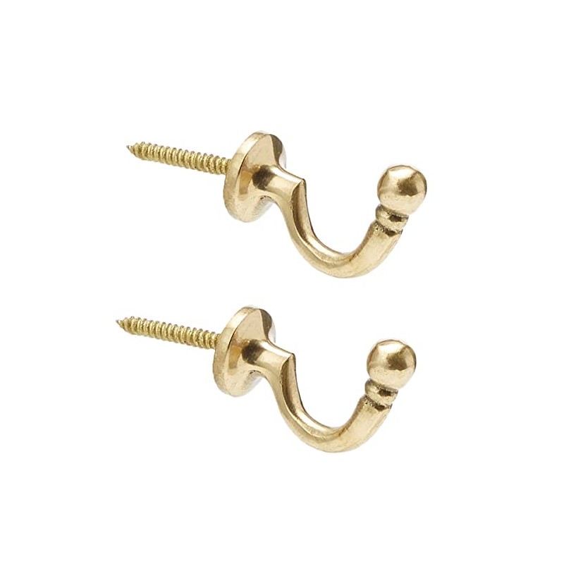 Merriway® BH01610 (2 Pcs) Ball End Curtain Drapery Hold Back Tie Back Hooks, 25mm (1 inch) Solid Brass - Pack of 2 Pieces