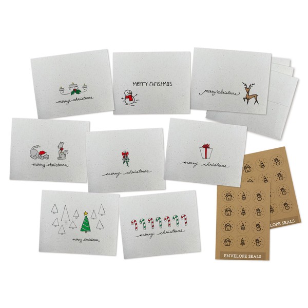 • MINIMAL & MODERN - Assortment of eight (8) Christmas Cards Designs - 3 of each design - 24 Christmas Cards with Envelopes & Assorted Kraft Sticker Envelope Seals