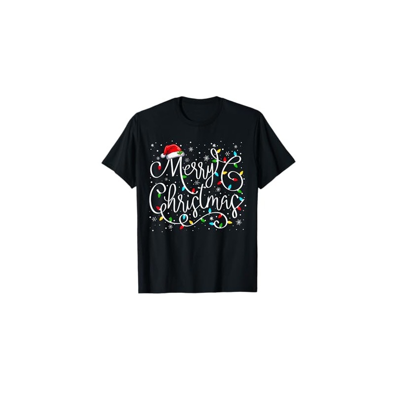 Merry Christmas Lights Santa Hat Xmas Family Matching Pajama T-Shirt