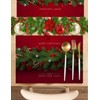 Merry Christmas Placemats Set of 6, Christmas Trees Non-Slip/Wipe Clean Linen Dining Table Mat Set, Xmas Heat-Resistant Place Mats Table Liner for Holiday/Party/Indoor Decoration - Happy New Year