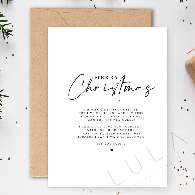 Merry Christmas Pregnancy Announcement A5 Card with envelope, Family, Pregnancy Announcement, Pregnancy Reveal, Friends, Christmas Card