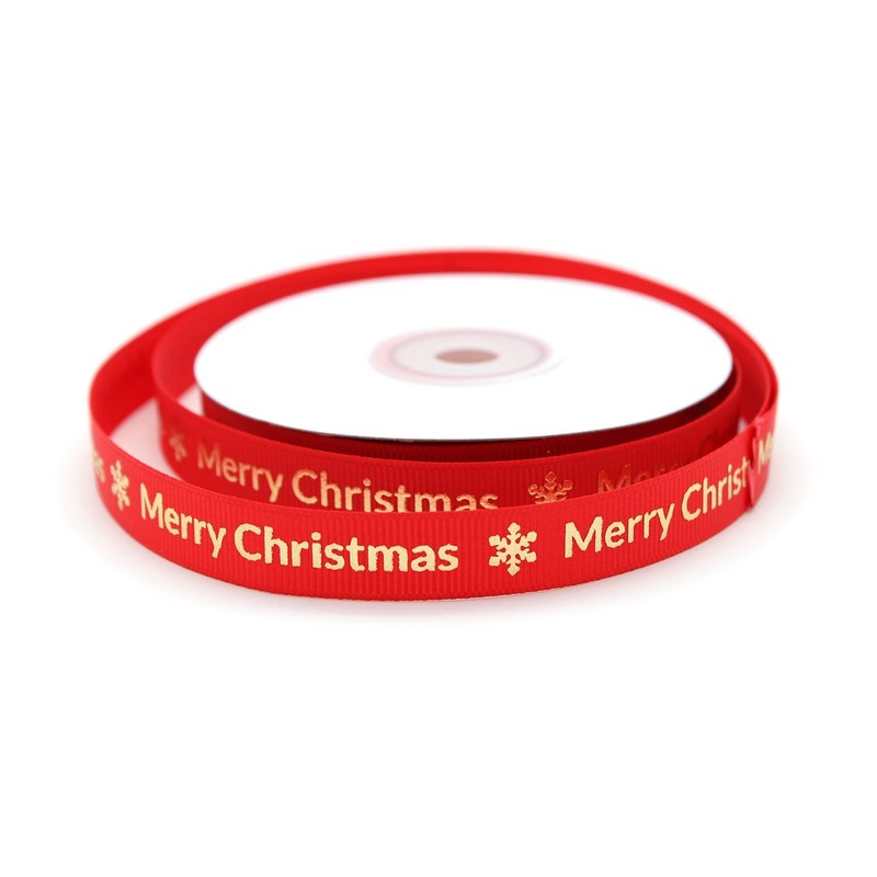 Merry Christmas - Red Ribbon and Gold Writing - Gros-grain Ribbon (13mm)