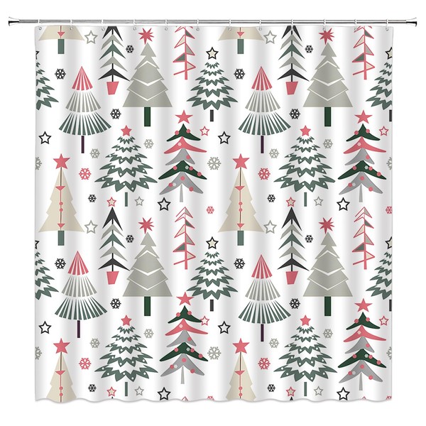 Merry Christmas Shower Curtain Xmas Tree Snowflake Forest Winter Holiday Festival Cartoon Pink Bathroom Home Curtain with Hooks,70" Wx70 H