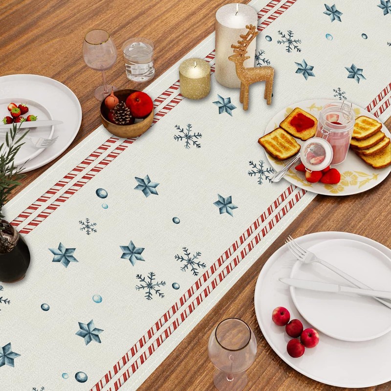 Merry Christmas Table Runner Santa Claus Snowman Snowflake Runner Candy Cane Stripe Design for Cardinal Table Decorations Seasonal Winter Xmas Home Kitchen Dining Table Decor 13x72 Inch
