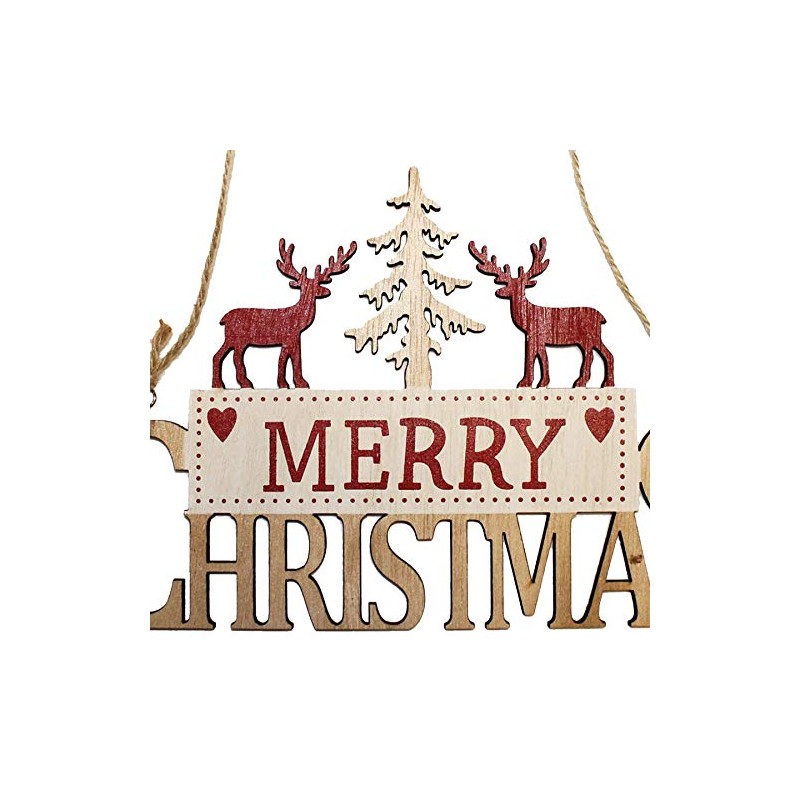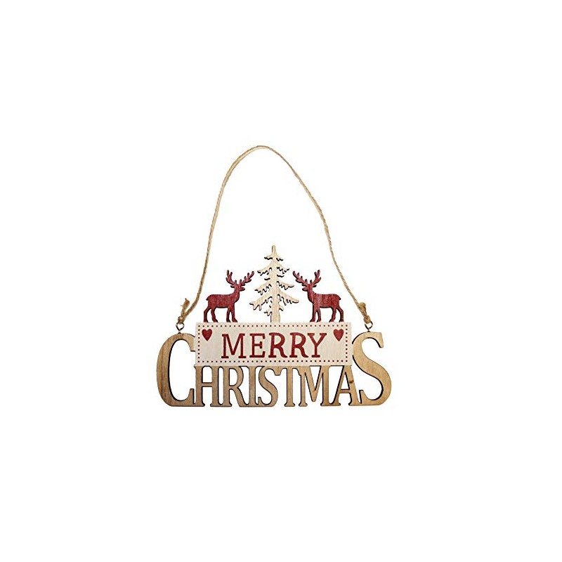 Hanging MDF Sign With Reindeers and Tree Reads: Merry Christmas Hanging Rope Shabby Chic Size: 22cm x 15cm Great to hang in the window at Christmas