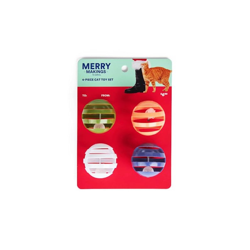 Merry Makings Cat Rattle Ball Toy Multipack, Pack of 4