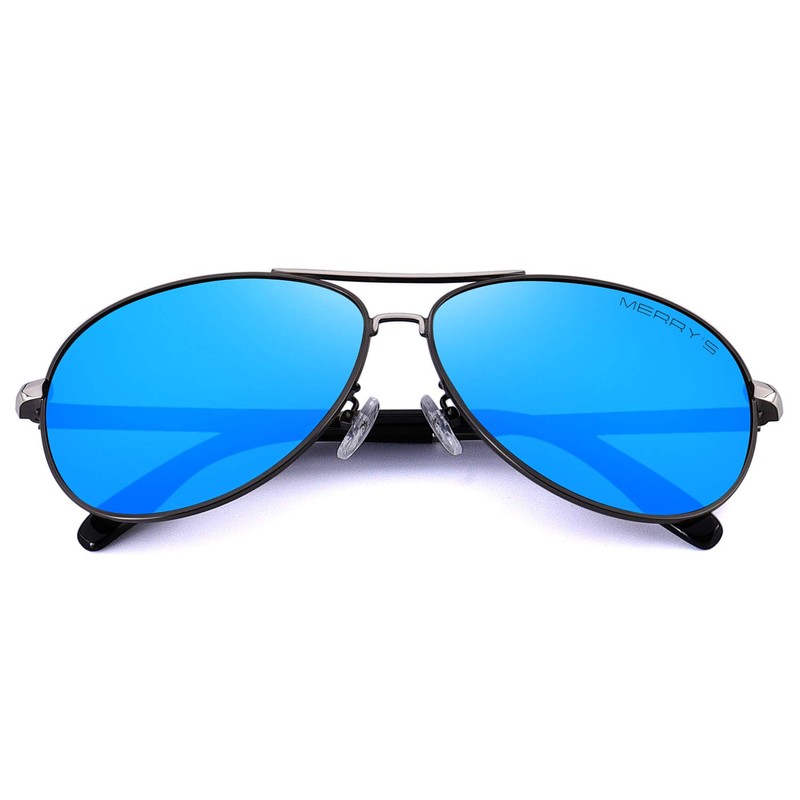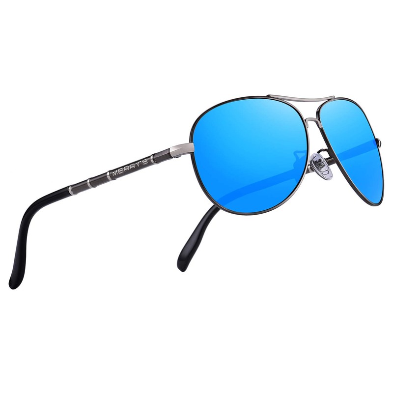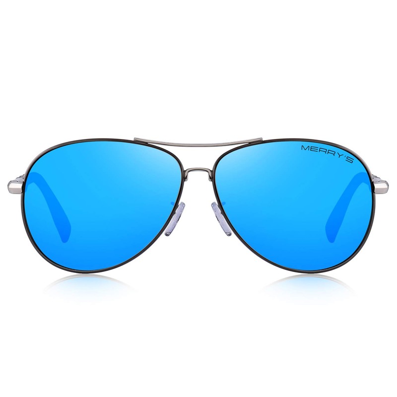 MERRY'S Polarized Sunglasses Men's Driver Glasses Bamboo Leg S8766 (Blue Mirr...