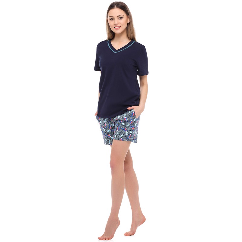 - Ladies’ pyjamas; Short sleeves; Short trousers with pockets; V neck; Perfect for the summer