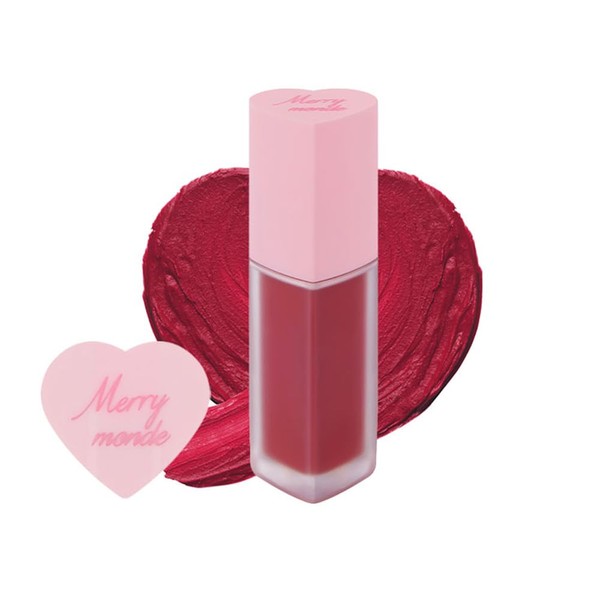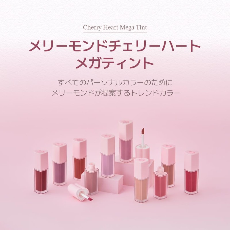Merrymonde Cherry Heart Mega Tint – High-Pigment, Smudge-Proof Korean Lip Tint for All-Day Wear (04 Berry Cherry, 1 Count)
