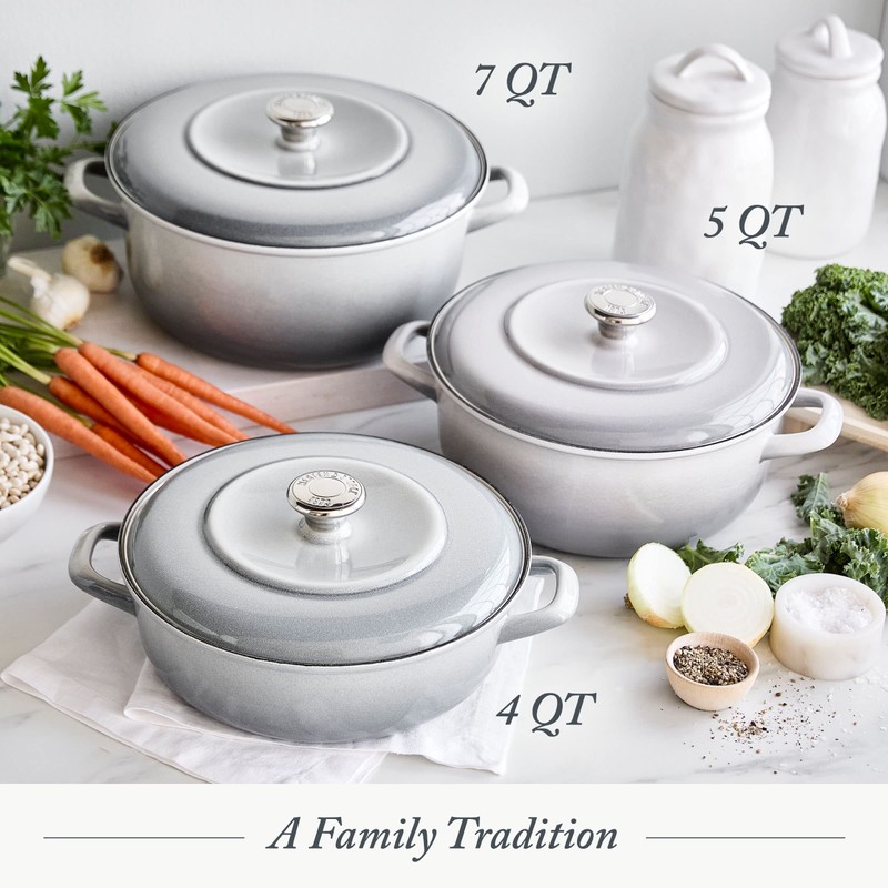 Merten & Storck German Enameled Iron, Round 5.3QT Dutch Oven Pot with Lid, Cloud Gray