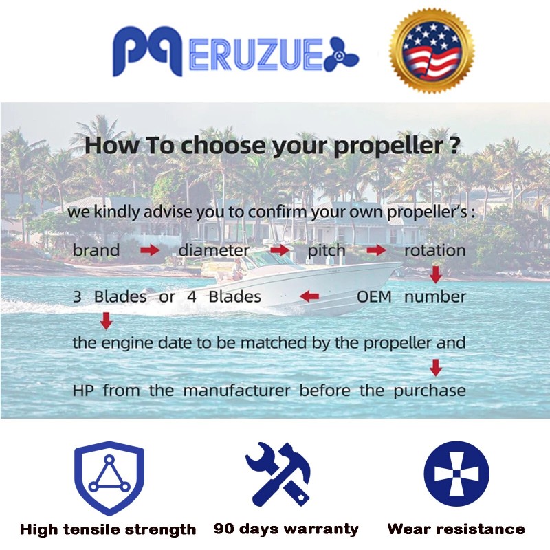 Meruzue 4 Blades Boat Propeller 10.3 x 13 for Mercury Outboard Engine 30-60HP 13 spline