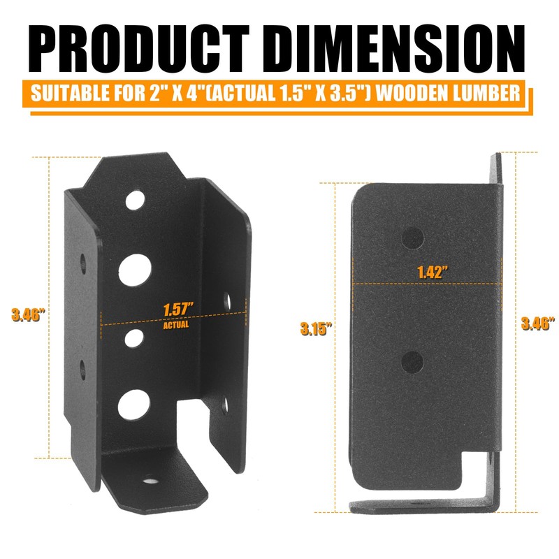 - 【Fit Size】This deck railing connector fits for 2" x 4" (Actual 1.5" x 3.5") wooden post.Note: If your posts are larger, you may need to sand them down to fit the brackets.