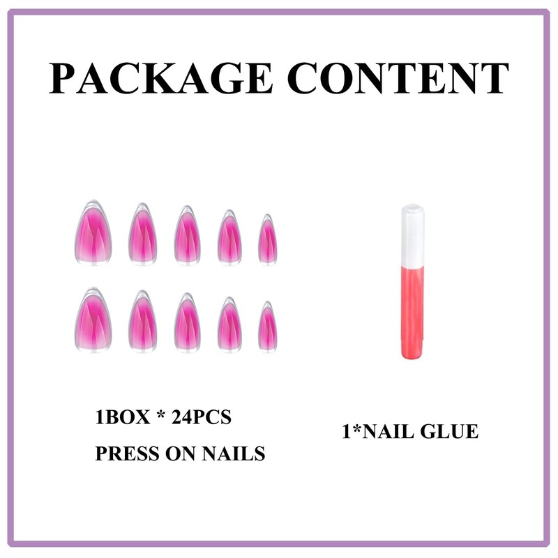 MERVF Almond Press on Nails Medium Fake Nails Pink Aura Gradient Glue ons Sliver Edge Design Stiletto Acrylic Y2K Nail Manicure Supplies DIY Glossy 24pcs