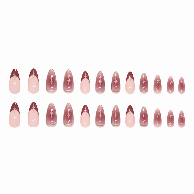 MERVF Almond Press on Nails Medium Fake Nails Purple Grape French Tip Glue ons Aura Gradient Acrylic Nail Star Y2K Desgin Manicure Glossy 24pcs