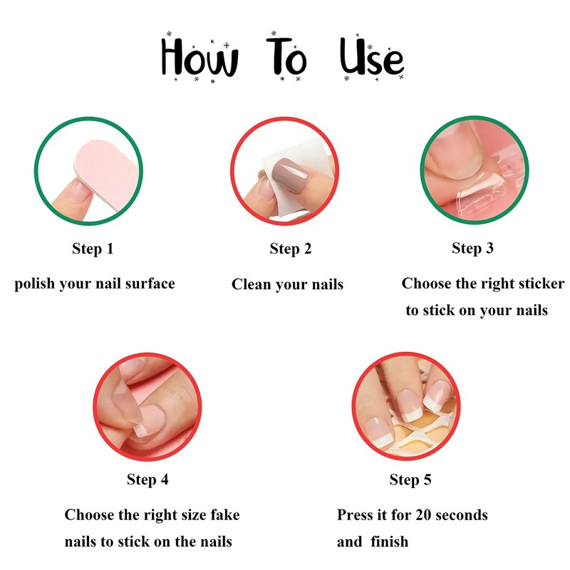 - Different Sizes: Fake nails in many different sizes. According to the size and width of your nails, you can choose the most suitable fake nails for your own