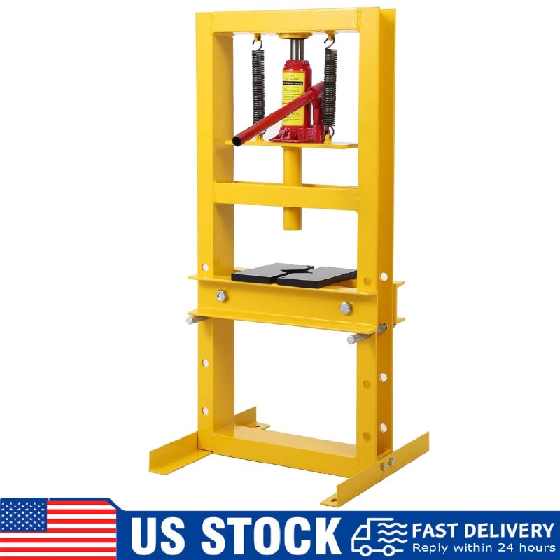 - EASY TO USE 6 TON HYDRAULIC PRESS: Our hydraulic workshop power presses are equipped with 6T hydraulic jacks to provide strong pressure; The spring can slowly and safely bounce back after pressing down operation; Piston-ram is treated and polished to resist skiving. The hydraulic shop press can be operated easily by simply pressing or lifting the long handle for the bottle jack
