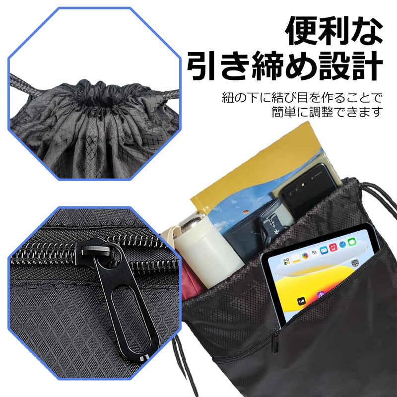 Mesanda Gym Sack, Knapsack, Rucksack, Pool Bag, Waterproof, Lightweight, Foldable, Drawstring Bag, Travel, Exercise, Swimming, Multi-functional, Separating Wet/Dry Shoes, Eco Bag, Sports Bag, Large