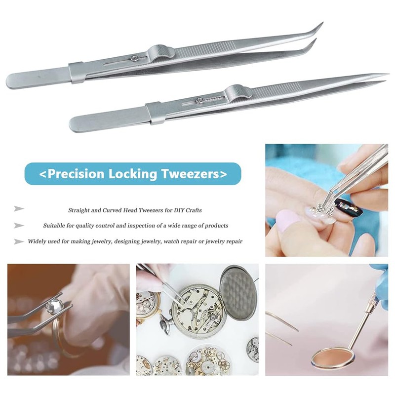 • Multipurpose Tweezer Tool: Great stainless steel locking tweezers for jewelry designing and handicrafts making, watch repairs or jewelry repairs, electronics repair, and medical and laboratory precision work.