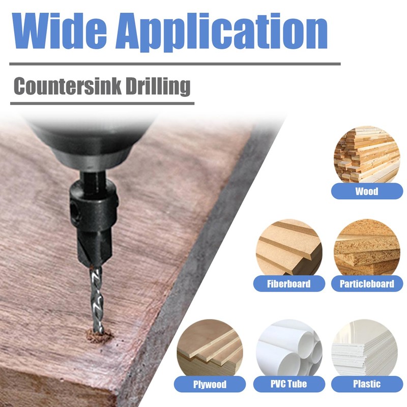 - Widely used: ideal for wood openings, graters, chamfers, screw head, etc. Suitable for wooden planks, plywood, aluminium board, fiberboard, chipboard, plastic, PVC board and other various soft material chamfers.