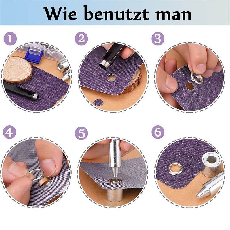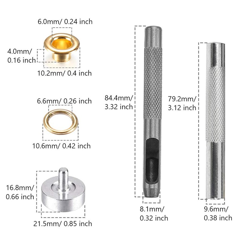 - Material: the eyelet tool set made of high-quality cupro nickel and electroplated surface coating, is robust and resistant to corrosion and rust.