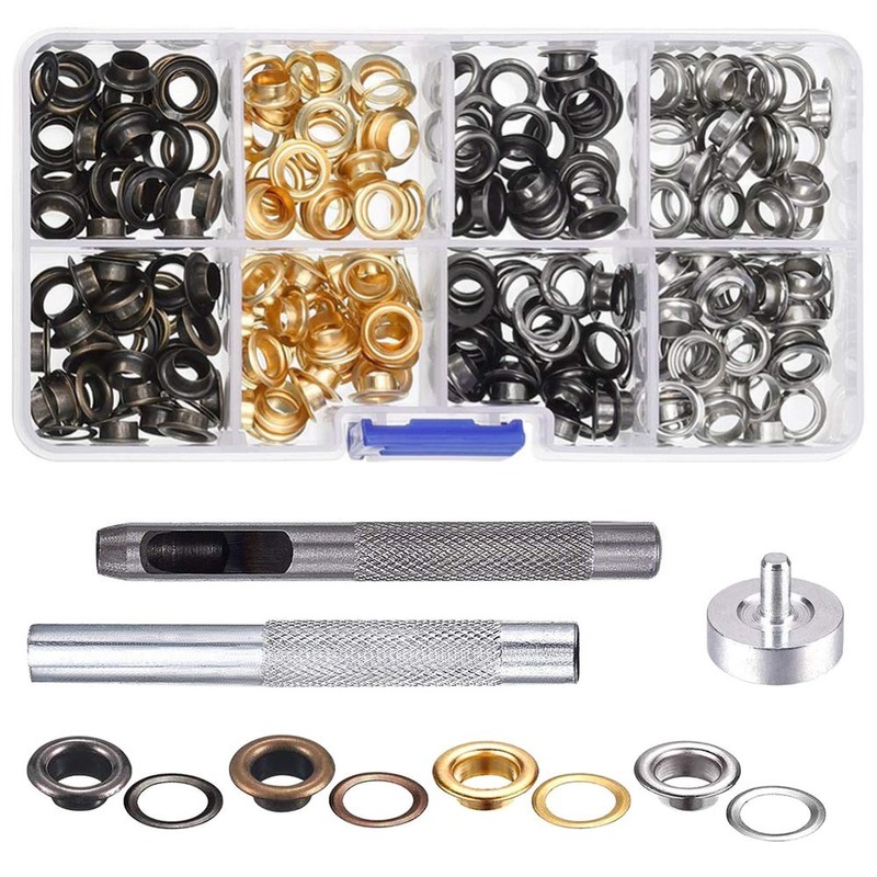 - Wide Applications The grommet kit is suitable for tarpaulins, tents, curtains, backpacks, leather work, repairs and decorations.