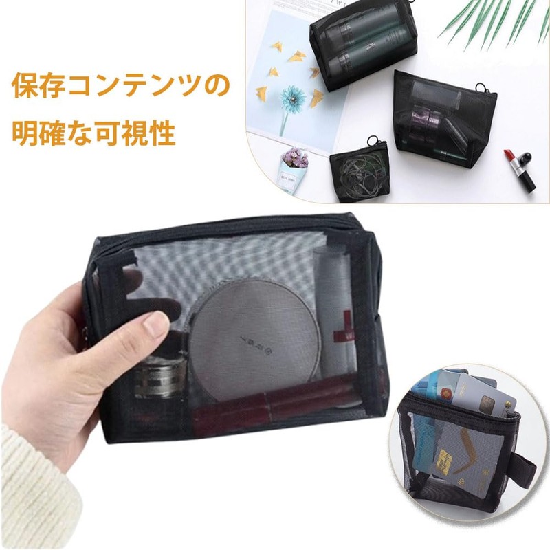 Mesh Cosmetic Pouch, Small Items, Mesh Pouch, Translucent, Ultra Lightweight, Portable, Cosmetics Storage, Small Items, Travel Bag, Convenient for Business Trips/Traveling (Black, Pack of 4), Other
