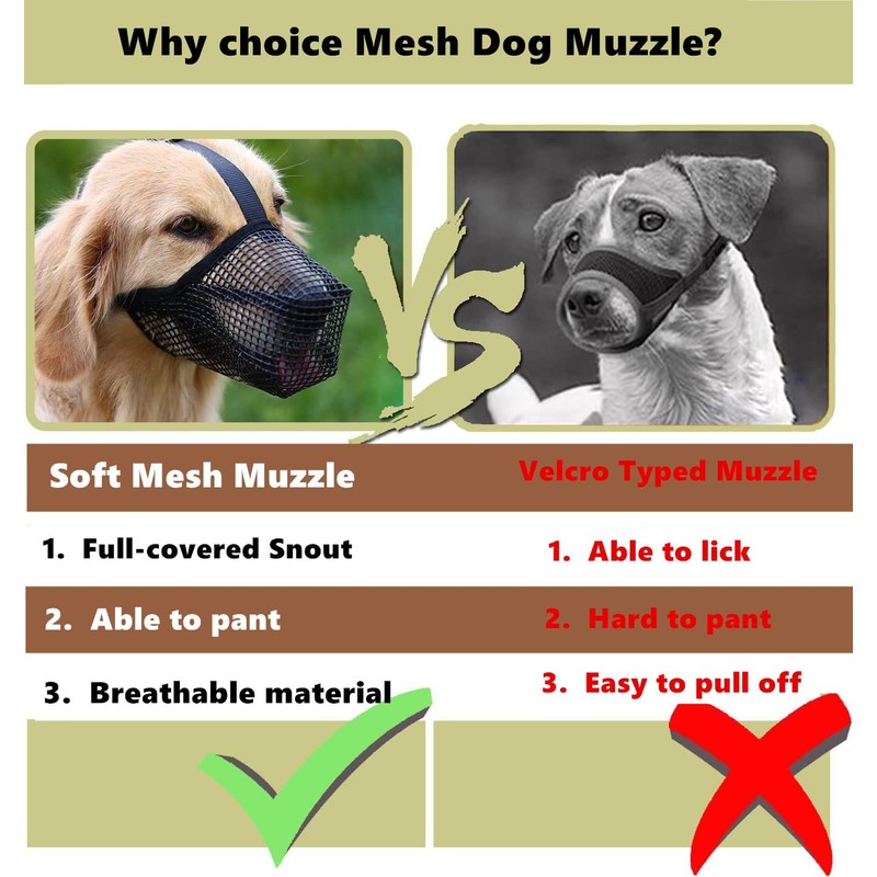• SAFE AND COMFORTABLE: Our full-covered mesh dog muzzle is perfect for large, medium and small dogs. To make the small muzzles for little dogs fit your dog perfectly, please measure the size before buying