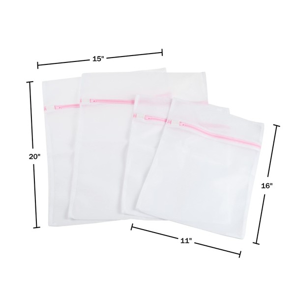 • MESH ZIPPER POUCHES – These mesh bags have a zippered closure designed to prevent garments from becoming loose during washing. They are perfect to protect delicates from damage or for separating whites, darks, dirty, or clean clothes while traveling.