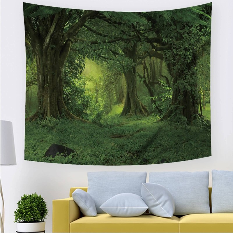 Mesnt Tapestry Forest, Wall Towel Tree Green Psychedelic Jungle Living Room Bedroom Picnic Blanket Rug Yoga Mat Wall Decoration (240 x 220 cm)