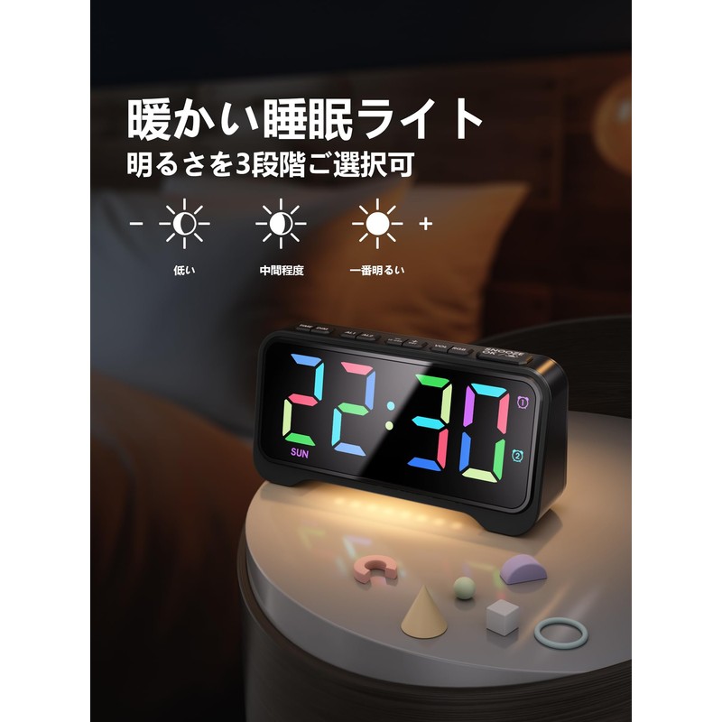 - (Easy to use and includes night light) The brightness of the night light can be adjusted to 3 levels (high, medium, low, and off), and the soft, warm yellow light helps to relax your body and body, promote melatonin secretion, and improve bad sleeping. The gentle glow of the night light also allows you to check the time comfortably without glare in the dark. Especially suitable for people who are afraid of the dark or children. If you are sensitive to light and don't want to turn on at night, we also recommend this night light alarm clock