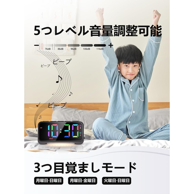 - (Loud and 5 Adjustable Levels) The volume is up to 116 dB and has a 5-level volume adjustment design that allows you to freely control the volume from gentle to blasts. It is loud enough to be heard over the wall, so you don't have to worry about being late even when you sleep soundly. If you live alone, or sensitive hearing, you can adjust the volume according to your personal needs and choose the best volume for a more practical and comfortable experience