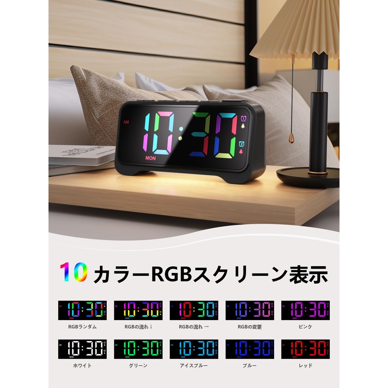 Mesqool Alarm Clock, Dynamic RGB, 10 Colors, LED Clock, Digital Table Clock, Loud Alarm, 2 Pairs, 5 Levels of Volume Adjustment, 7 Levels of Brightness Adjustment, Snooze Table Clock, Stylish