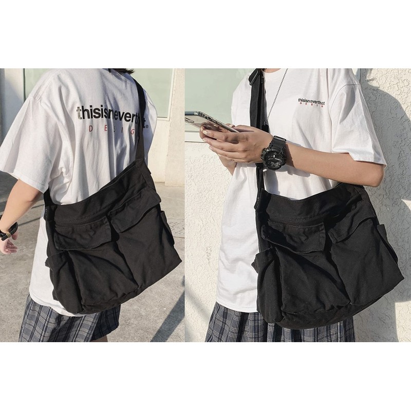 Messenger Bag, Large Hobo Crossbody Bag with Multiple Pockets Canvas Shoulder Tote Bag for Women and Men
