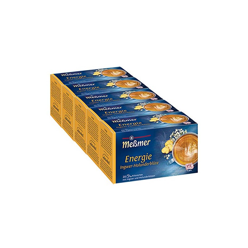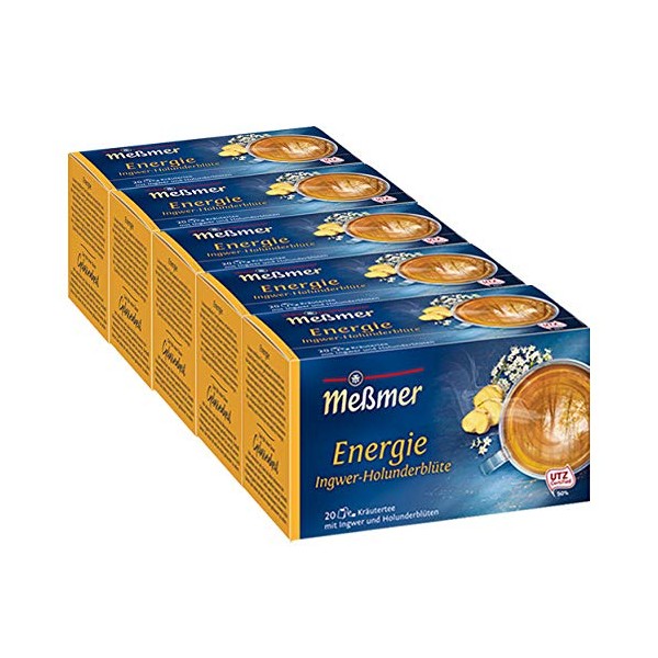 Meßmer Energy Ginger Elderflower 20 TB Pack of 5 (5 x 40 g Pack)