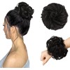- Effortlessly achieve a stylish messy bun hairstyle with this Messy Bun Hair Piece. Designed for women with curly or wavy hair, the synthetic jet black hair bun scrunchie adds volume and texture to your natural hair, creating a tousled updo look.