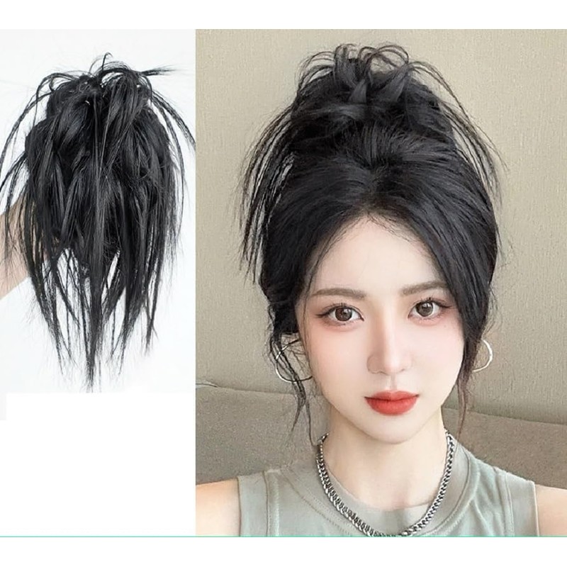 - 💇♀️【Scrunchies Style】: The hairpiece features scrunchies design, adding a trendy and fashionable element to your messy bun look.
