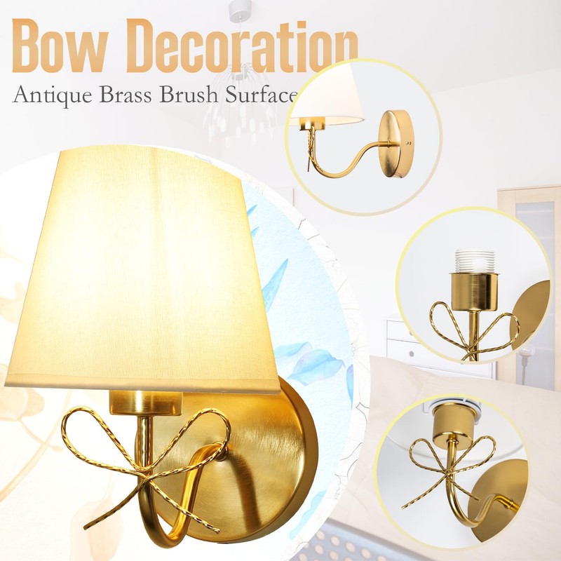 - Product Dimensions: Lampshade: 18.5cm/7.2" (Wide Side Diameter) x 10cm/4” (Height), 12cm/4.7" wall mount diameter. The height of whole light: 27cm/10.6". Metal lamp body and cloth lamp shade. Classic simplicity retro body color with a metal cap. Soft light gives you romance and comfort