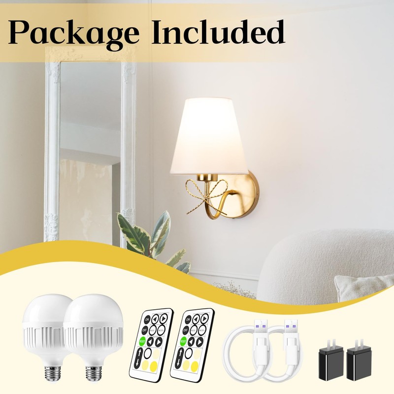 - Wireless Battery Operated Wall Light Set of Two: Battery operated bulb so that you can control wall light as far as 10 meters/ 32 feet. A practical and functional indoor lighting solution to illuminate spaces in your home without power